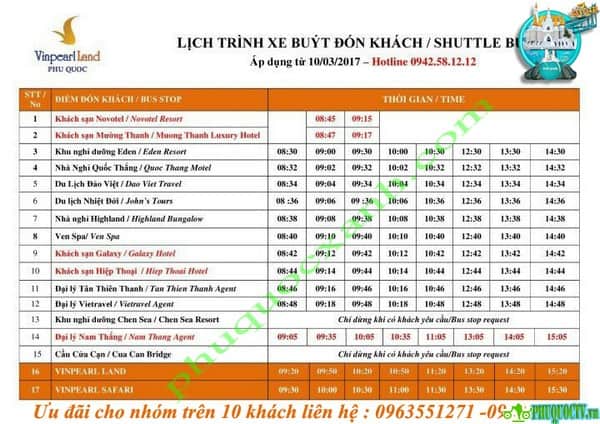 Tuy nhiên, để đáp ứng nhu cầu vui chơi ngày càng tăng cao của du khách. Hệ thống xe bus của Vinpearl Phú Quốc sẽ có sự thay đổi trong lịch trình đón trả khách bắt đầu từ 10/3/2017 như sau: