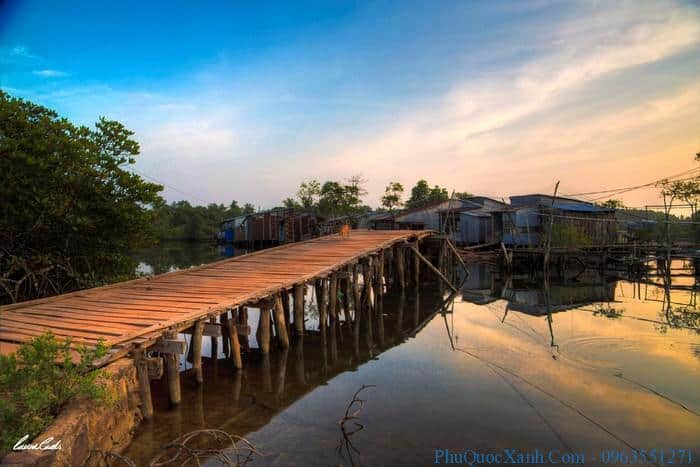 Làng chài mang khung cảnh bình dị, nét nguyên sơ còn vẹn 100%. Tất cả từ chiếc cầu gỗ lắc léo đến những mái nhà, ghe thuyền của người dân làng chài. Ngay cả sự gần gũi, thân tình của người ngư dân nơi đây cũng mang đến sự thoải mái đến lạ kỳ, gần gũi và thân quen.